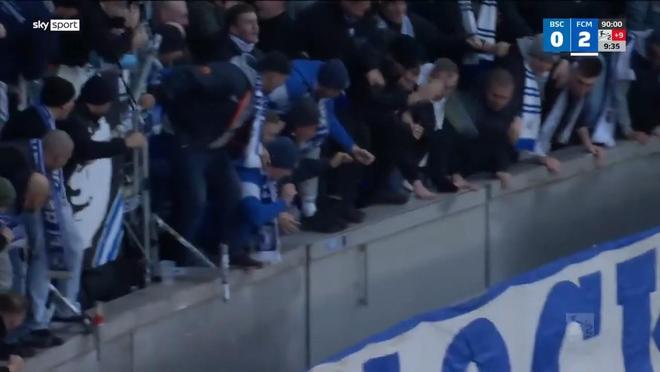 马格德堡球员庆祝进球,不幸跌入2.7米的沟中但安全逃出